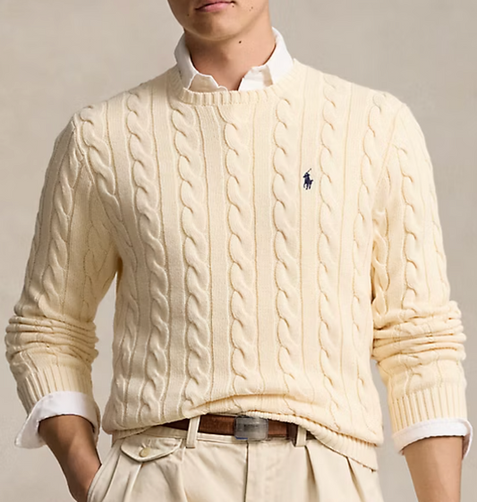 Cable-Knit Cotton Crewneck Sweater