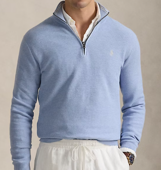 Mesh-Knit Cotton Quarter-Zip Sweater