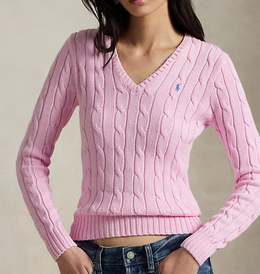Cable-Knit Cotton V-Neck Sweater
