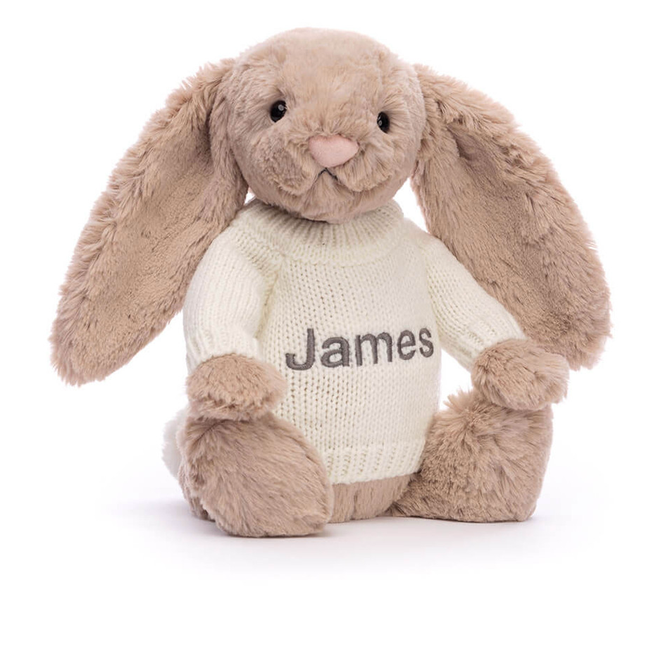 Bashful Beige Bunny with Personalized Cream Jumper
