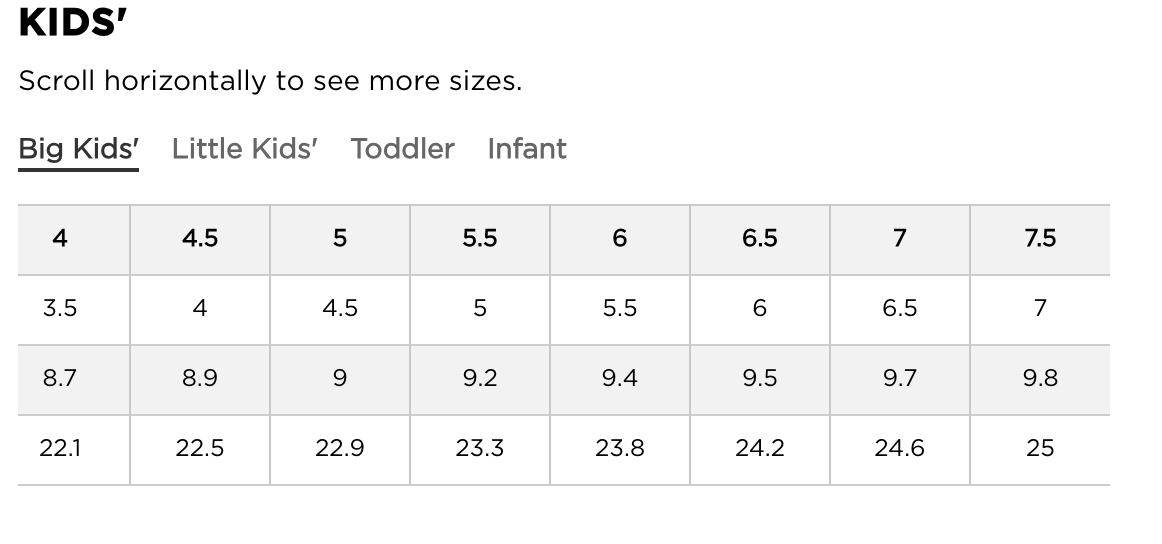 Big kids size